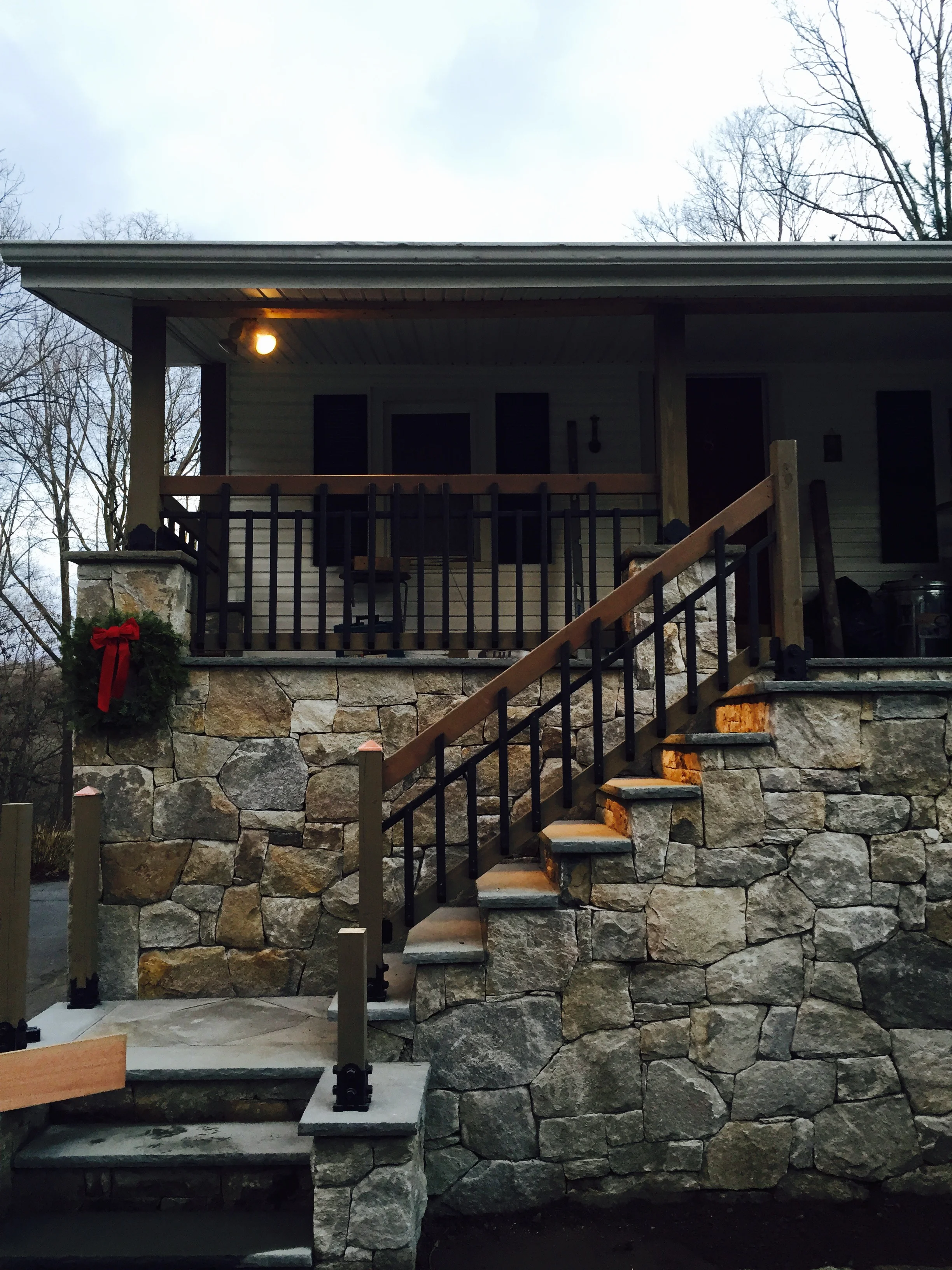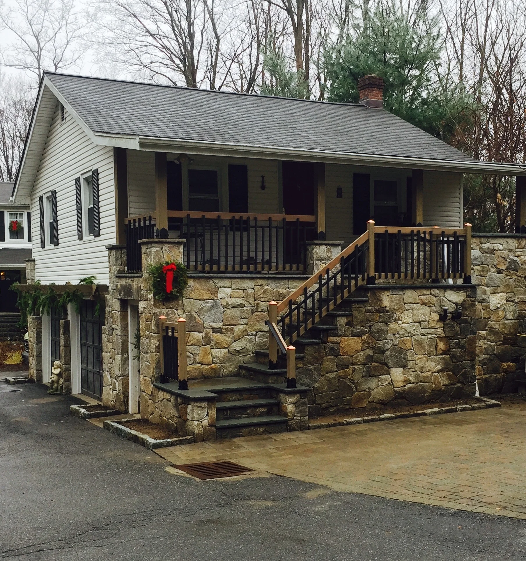 Takumi Design removed this dated 1970’s closed off kitchen and transformed it into an oasis for living. The original kitchen’s limited space and long narrow footprint was opened up to create a larger usable space for cooking and entertaining. Walls were removed to open space to the dining room area and install of large window further connects one’s with the outside environment. A modern feel was needed to match the rest of the home, but there was also a need to stay pure to the stone materials. Rough sawn, 200 hundred year old, repurposed oak boards were used in the fabrication of the glass and wood cabinets. Saw marks and nail holes were contrasted with a clean modern flair to connect to the rest of the home. All cabinets were pickled white and satin finished. A six inch thick, seven foot granite stone bar top was fashioned to provide an inviting natural feel and blur the lines the between the outside and in. The reflection caused by the natural light shining into the room and reflecting off the cabinets makes it so the impact of the natural environment is doubled. Black granite was used for remainder of counter top spaces, with the main granite Stone slab creating an illusion of hovering just above it. New ceramic floors were chosen to simulate a stone slate floor. This tile bordered the adjacent dining room making the space feel more apart of it than ever before. A custom made, LED efficient, wave-bar light was designed and installed to provide a natural glow to the space at night time. This wave light emulates the shape of ocean currents, thus bringing another element into the space. Stainless steel appliances and a farm sink were chosen to compliment the clean modern look of the house as well as the rest of the kitchen.